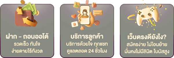 ตอบ : - มีระบบฝาก-ถอนอัตโนมัติรวดเร็ว รองรับทุกธนาคาร มีโปรโมชั่นแจกเครดิตฟรี อัตราการจ่ายเงินสูง และมีทีมงานซัพพอร์ตตลอด 24 ชม.